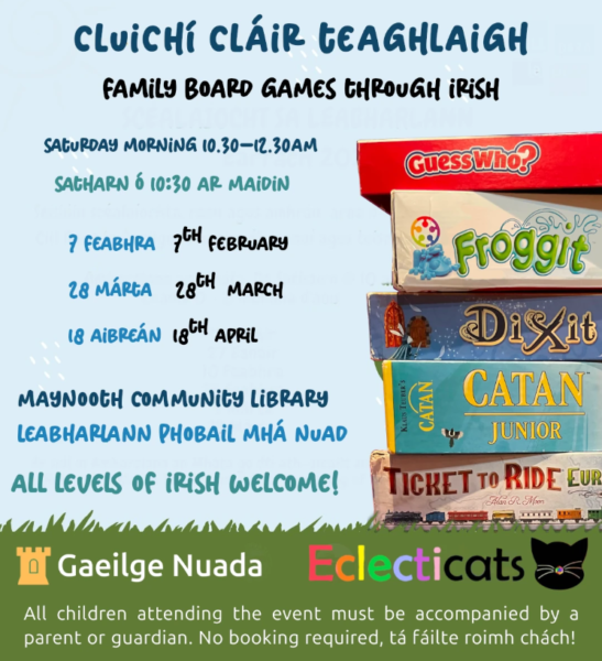 All Events This event has passed. Gaeilge Nuada – Cluichí Cláir Teaghlaigh April 18 @ 10:30 AM - 12:30 PM Add to calendar Google Calendar iCalendar Outlook 365 Outlook Live Details Date: April 18 Time: 10:30 AM - 12:30 PM Organizer Gaeilge Nuada Email: eolas@gaeilgenuada.ie Website: View Organizer Website Venue Leabharlann Phobal Mhaigh Nuad An tSráid Mhór Maigh Nuad, Co. Chill Dara W23 ND79 Ireland + Google Map