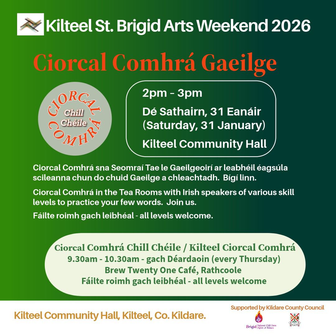 An chéad imeacht eile 10 Eanáir 2025 08:45-10:00 gach Aoine i gCaifé Sásta Maigh Nuad. Caint, comhrá agus caife as Gaeilge. Ar mhaithe tuiste / caomhnóir bunscoile agus tá fáilte mór roimh cách, mar shampla foghlaimeoirí nó leanaí óga! 08:45-10:00 every Friday in Café Sásta Maynooth. Conversation and coffee in Irish. Convenient for after national school dropoffs, all welcome especially […]